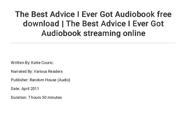 The Best Advice I Ever Got - Orange County Library System - OverDrive She reveals how the words of Thomas Jefferson helped her deal with her husband's tragic death from cancer, and what encouraged her to leave the security of NBC's Today show for a new adventure at CBS. Delightful, empowering, and moving, The Best Advice I Ever Got is the perfect book for anyone who is thinking about the future, contemplating taking a risk, or daring to make a leap into the great unknown.
