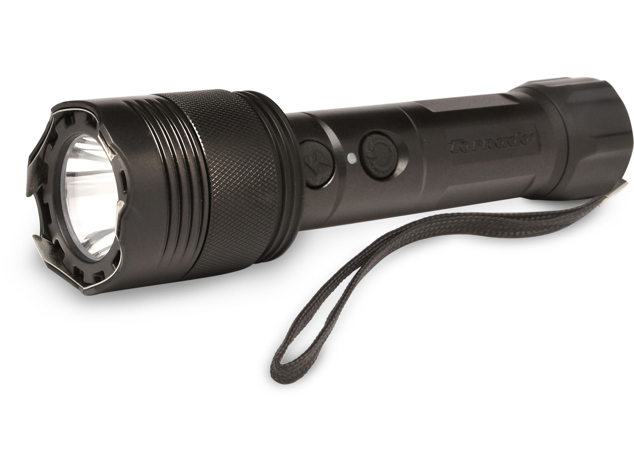 Best Stun Gun Flashlight Review: Police Force Tac Torch Police Force Tactical Torch Stun Gun Flashlight Features 5 watt T6 LED bulb 2-in-1 self-defense tool 17 million volt stun charge 5 different light modes, including SOS 1,200 lumens-powered light Lifetime limited manufacturer's warranty 2 18,650 batteries (rechargeable) 13-inch long exterior (easy to scare away an assailant or attacker)