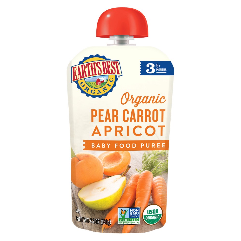 Earth's Best Organic Pureed Baby Food Carrots - 4oz : Target Earth's Best Organic Baby Food Jars are available in unique combinations of fruits, veggies, meat and wholesome grains. Pick the appropriate texture and ingredient based on your baby's age: Stage 1 jars are for 4 months +, Stage 2 for 6 months + and Stage 3 for 9 months +. All Earth's Best jars are USDA Organic and contain no artificial flavors ...